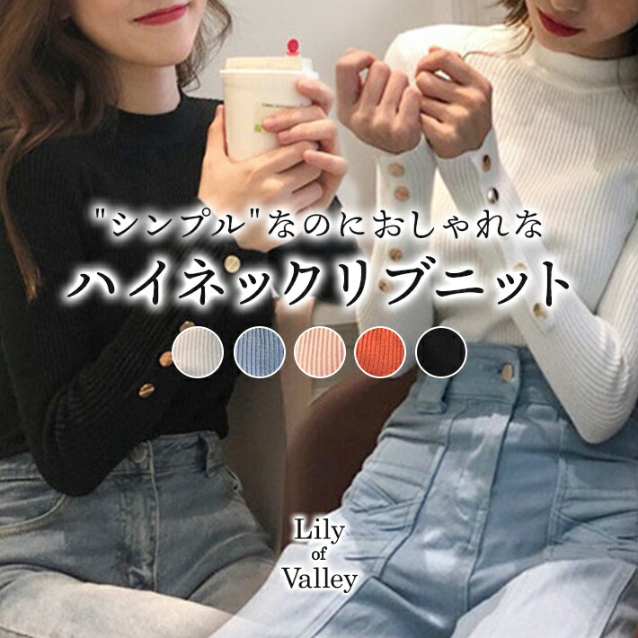 着回し力バツグン♪長袖プチハイネックリブニット レディース トップス リブ ニット セーター 無地 シンプル タートルネック ボトルネック タイト きれいめ 上品 清楚 秋 冬 春