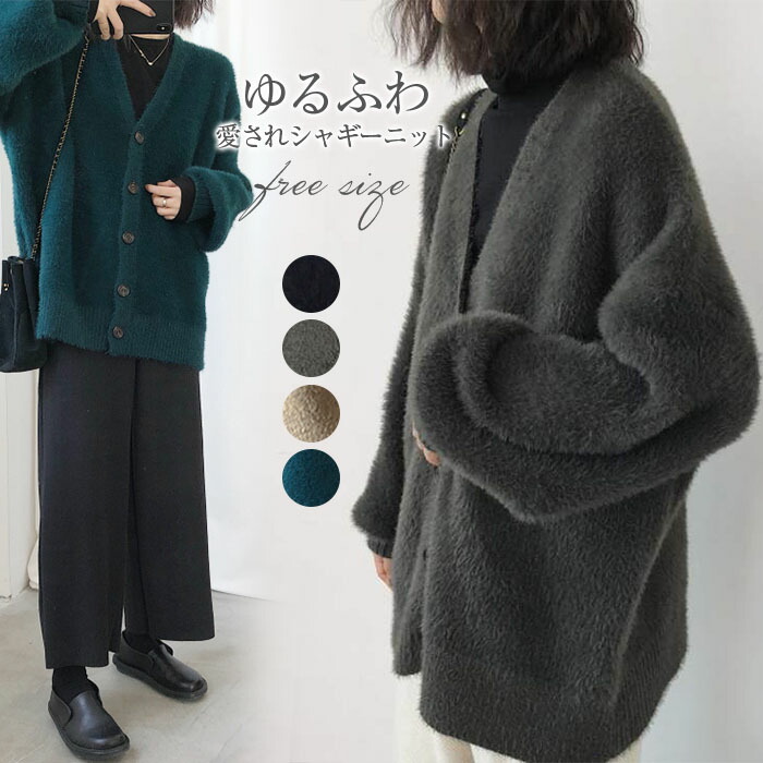 シャギーニットカーデ 大きいサイズ 秋 冬 オーバーサイズ カーディガン ニット カーデ レディース シャギー シャギーニット 羽織り 前開き きれいめ カジュアル ゆったり もこもこ