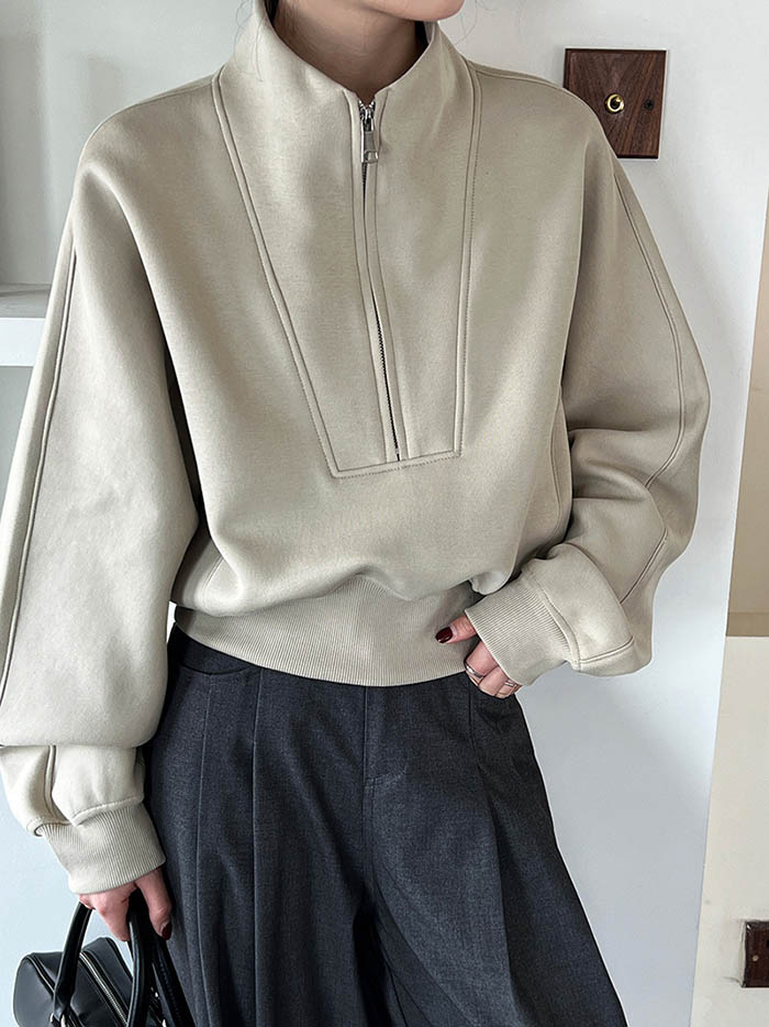 トレーナー レディース 春 秋 冬 ハーフジップ トレーナー トップス 長袖 ゆったり フェミニン 着回し シンプル カジュアル 体型カバー 柔らかい トレンド感 こなれる 上品 お洒落