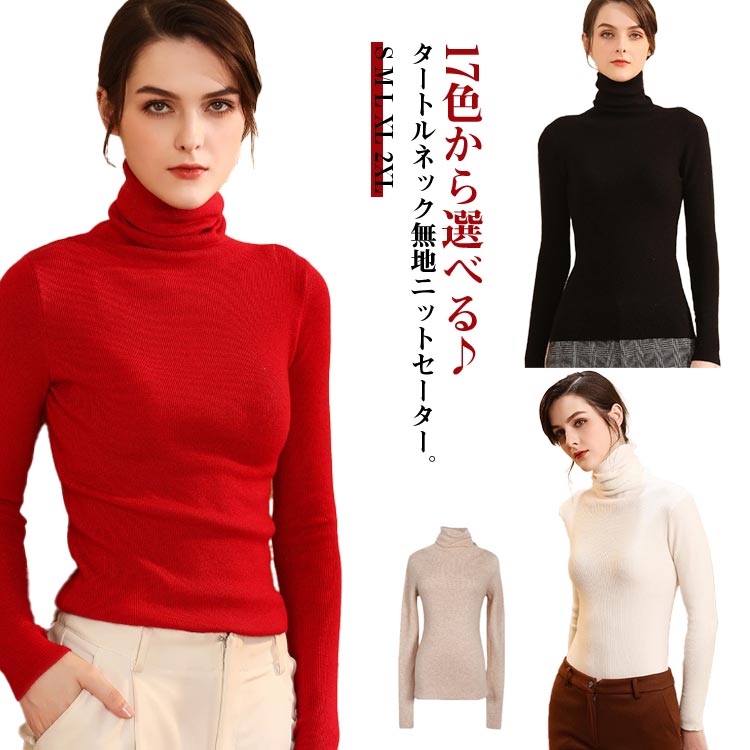 17色から選べる♪タートルネック無地ニットセーター ニットセーター レディース セーター ストレッチ 暖かい