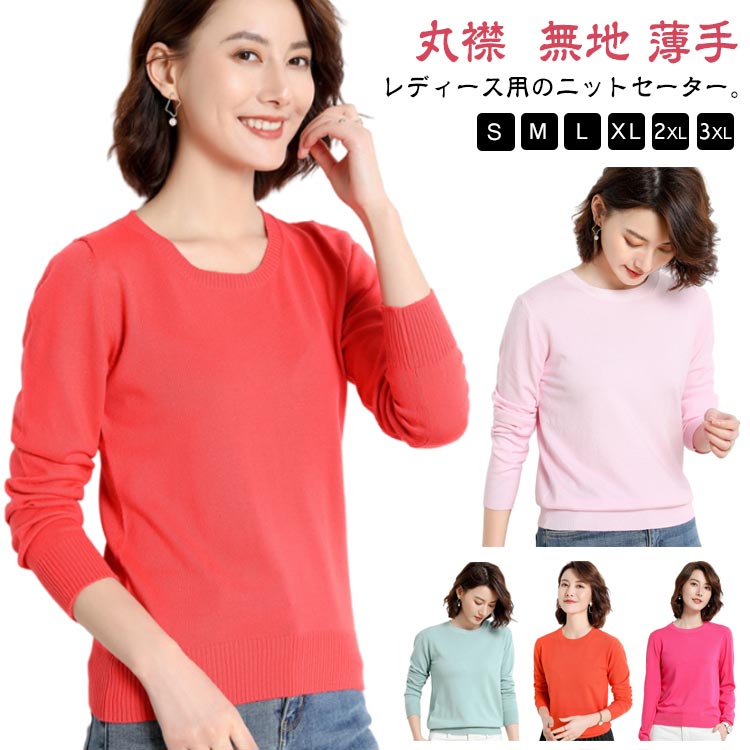 薄手ニット ネック ニット トップス レディース ニット 洗える セーター 長袖 春 秋 冬 オフィス ニットセーター ネックカットソー