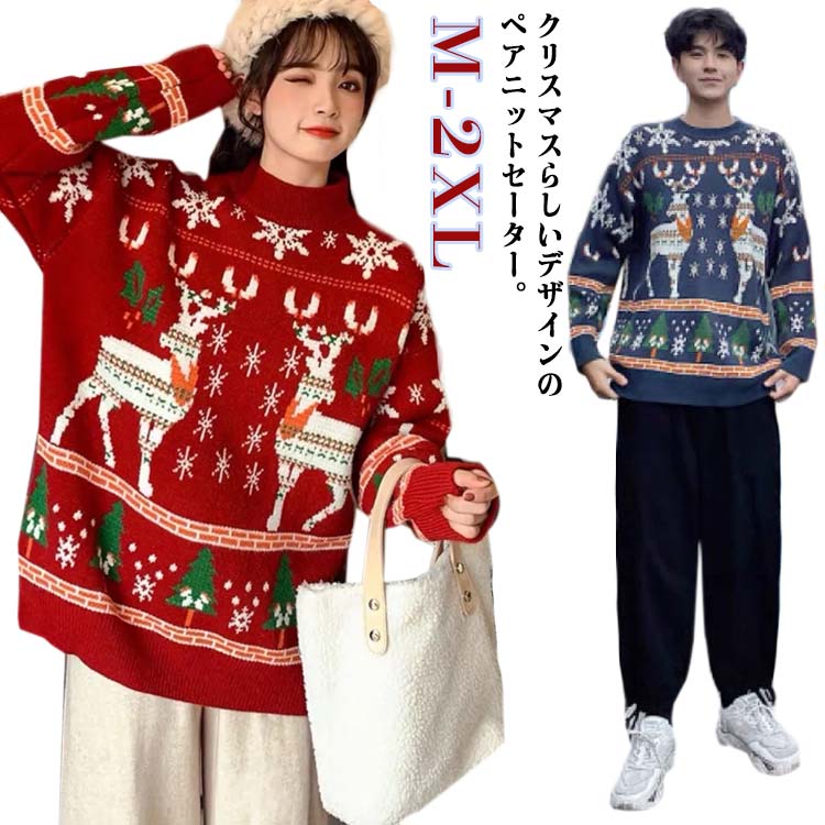 クリスマスセーター ユニセックス セーター ニットトップス プルオーバー 長袖 サンタ服 トナカイ 雪の結晶 ペアルック お揃い