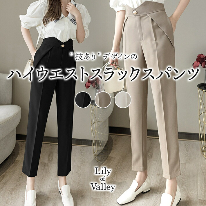 周囲に差が付く技ありデザイン ハイウエスト スラックス パンツ レディース ボトムス ロング ウエストゴム オフィスカジュアル ミモレ丈 テーパード アンクル 大人可愛い 韓国