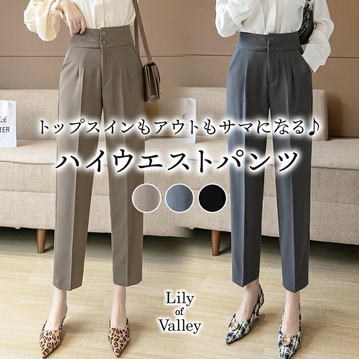 トップスインもアウトもサマになる ハイウエスト スラックス アンクル パンツ レディース ボトムス 清楚 クロップド テーパード 大きいサイズ ゆったり オフィスカジュアル