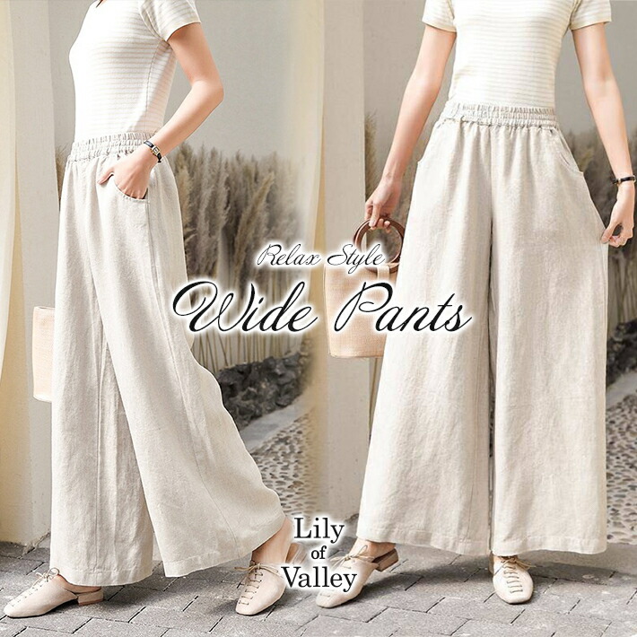 着るだけでシーズンライクな着こなしが叶う ミモレ丈 リネン ワイド パンツ レディース ボトムス ロング丈 シンプル 春 夏 九分丈 ガウチョ テーパード クロップド フレア 綿麻