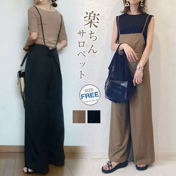 サロペット パンツ レディース パンツ ワイドパンツ ロング丈 春 夏 オールインワン きれいめ 着痩せ 大きいサイズ カジュアル おしゃれ 体型カバー ゆったり カジュアル