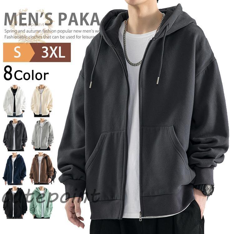 スウェット パーカー メンズ 薄手 無地 長袖 パーカ フルジップ ジップ ジップパーカー ビッグパーカー トップス フード付き