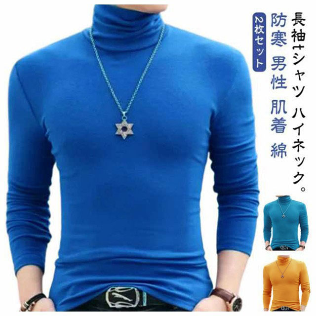 長袖 シャツ カットソー 薄手 ハイネック ロン 秋冬 ロングシャツ ストレッチ スリムフィット インナーシャツ