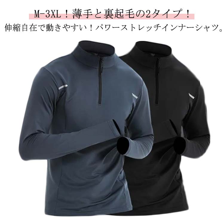 選べる厚み スポーツインナー メンズ 長袖 裏起毛 シャツ ハーフジッパー インナーシャツ 保温 アンダーシャツ 大人 モックネック シャツ ランニングウェア トレーニング