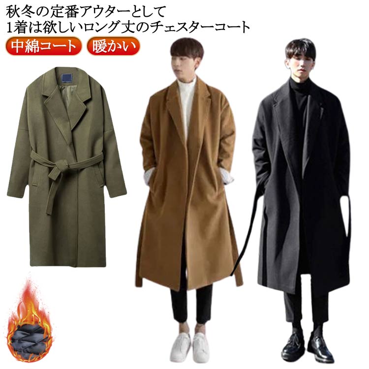 中綿コート メンズ 冬 チェスターコート フェイクウール 暖かい 防寒 裏地付き 無地 ロング丈 アウター ビッグシルエット 大きいサイズ 通勤 紳士服 冬コート