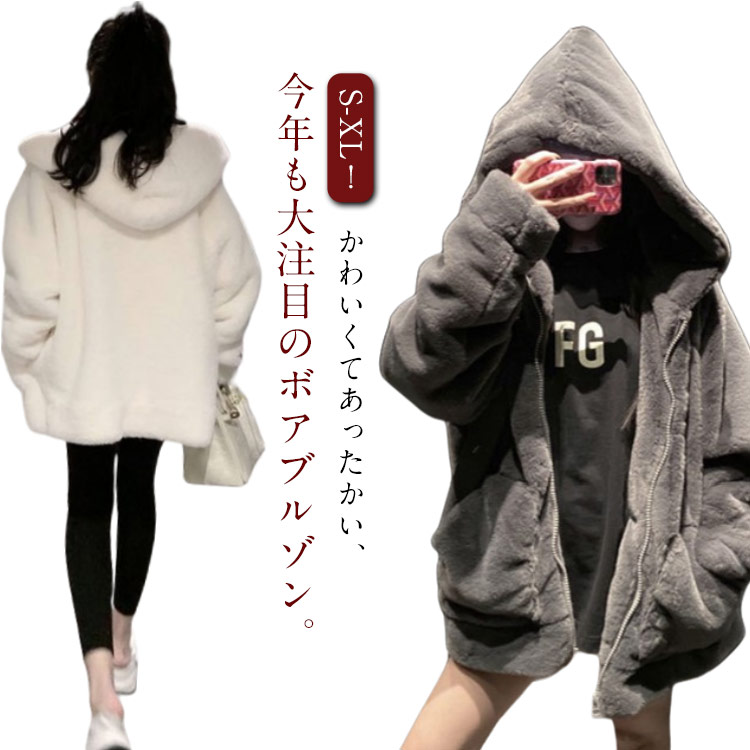 リバーシブル ボア ブルゾン ボアジャケット 2way もこもこ フェイクファー ライトアウター ボアコート 冬 ゆったり 暖かい 柔らかい カジュアル 通勤 通学 S-2XL