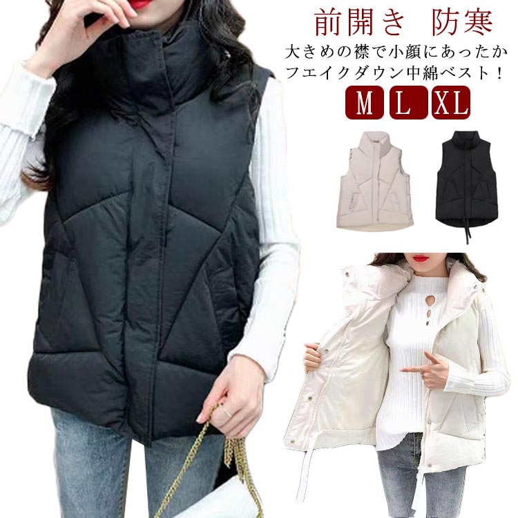 中綿ベスト レディース アウター ジャケット ベスト 中綿 フェイクダウン 上着 羽織り ハイネック 軽い 軽量 秋 冬 通勤 通学 暖かい M L XL
