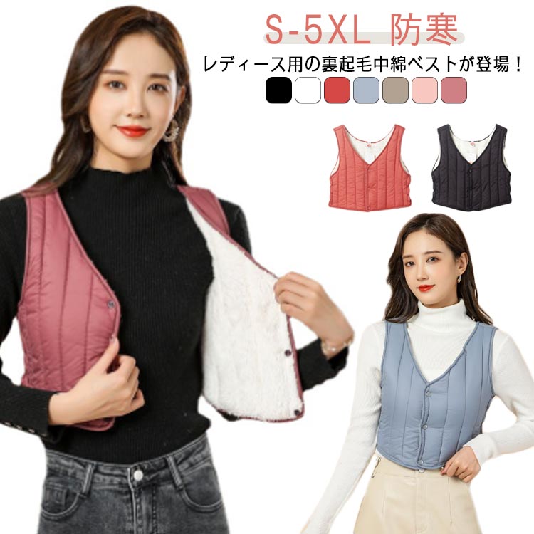 インナーベスト 裏ボア あたたかい 軽量 中綿ベスト レディース インナーベスト ショート丈 ショートベスト 中綿 防寒 アウター ノースリーブ S-5XL