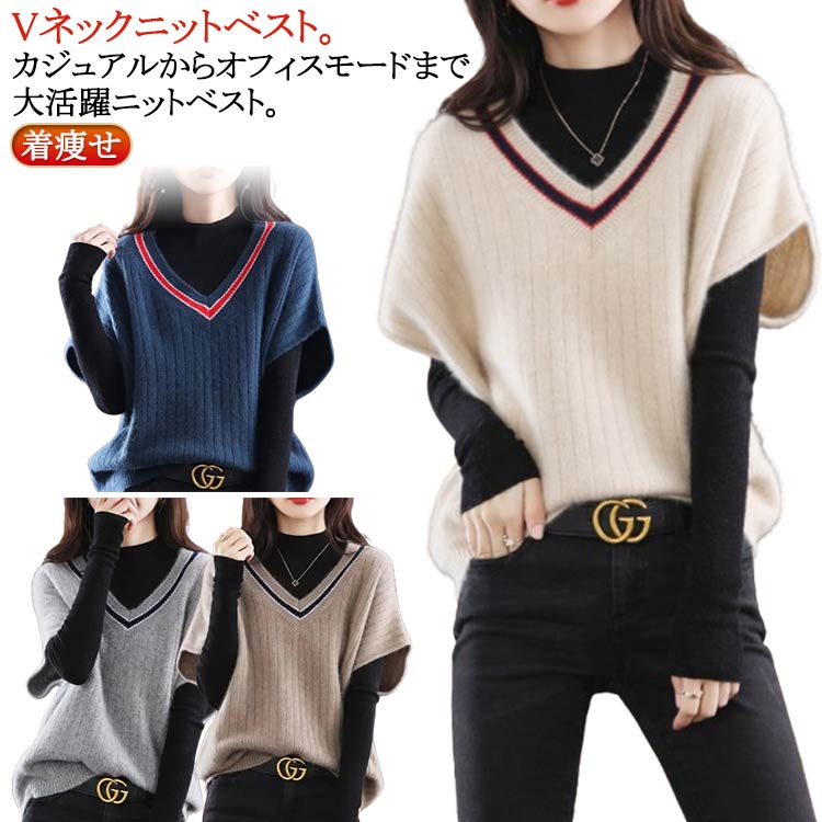 Vネック ベスト レディース ニットベスト トップス 春 秋 冬 柔らか 着痩せ カジュアル 暖かい