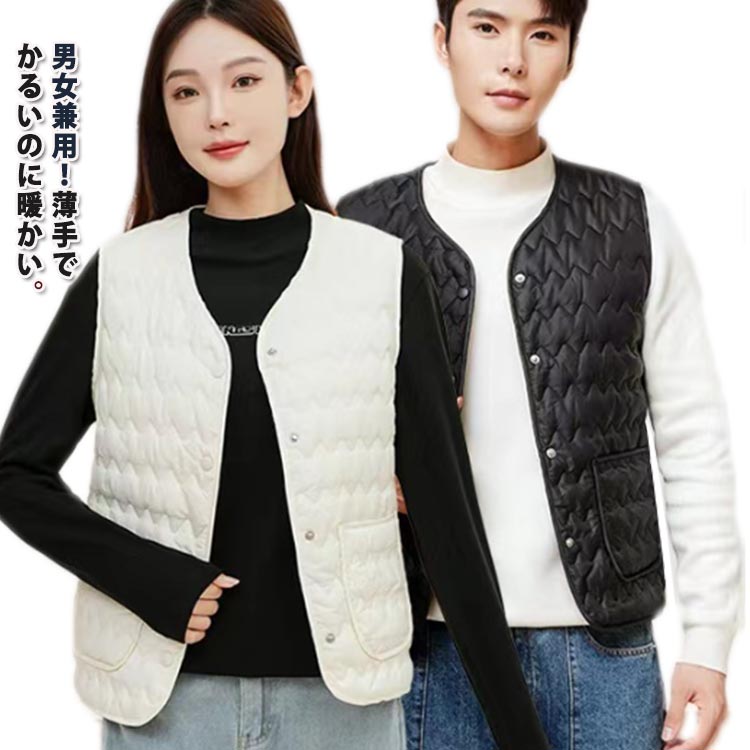 薄手でかるいのに暖かい インナーとして着込めば薄手のアウターでもあったか 中綿ベスト Vネック ボタン インナーベスト レディース メンズ