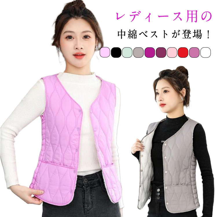 軽量 防寒 中綿 キルティングベスト 中綿ベスト レディース 裏起毛 インナーベスト 中綿ベスト 防寒ベスト