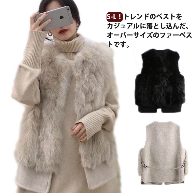 周りと差が付く フォックスファー風ベスト ざっくり羽織るベスト レディース ファーベスト フェイクファー ベスト 大人 カジュアル エコファー 通勤通学 防寒 春 秋 冬