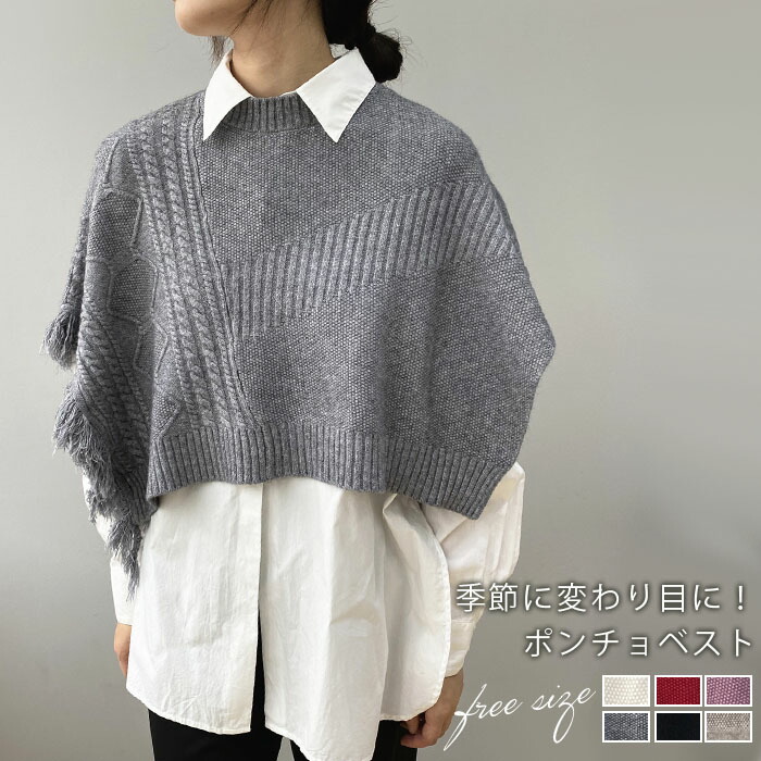 ニットベスト ベスト レディース ポンチョ ニット レイヤード 重ね着 フリンジ ベスト 春 秋 ニット タンクトップ トップス ドルマンスリーブ 重ね着 ノースリーブフレンチスリーブ