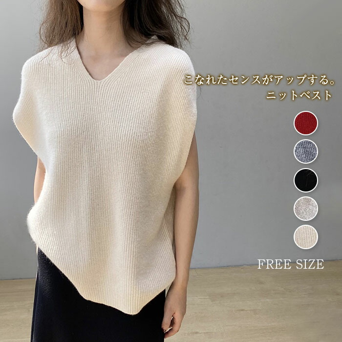 トレンドのふんわりシャギーが今年らしい ニットベスト レディース 春秋 プルオーバー ニットトップス ノースリーブ ニット 体型カバー シンプル カジュアル お洒落 キレイめ