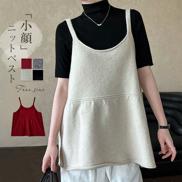 ニットベスト ベスト レディース 春 秋 Vネック タンクトップ トップス 重ね着 キャミソール ニット 透かし編み ベスト ショート丈 ノースリーブ タンク 体型カバー 柔らかい 着痩せ