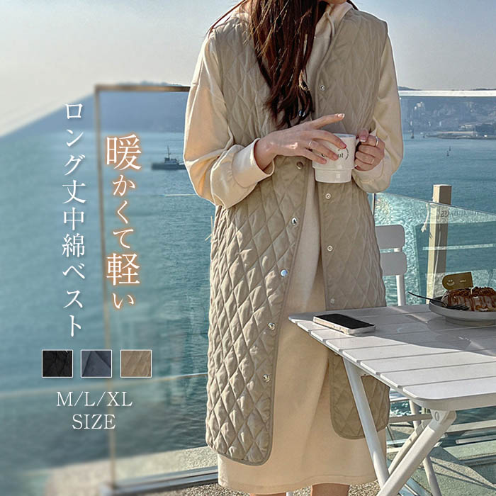 中綿 ベスト レディース 秋 冬 ロング丈 ベスト アウター コート ノースリーブ おしゃれ 秋 冬 大人 可愛い 羽織 ベスト 中綿 トレンド きれいめ カジュアル デイリー