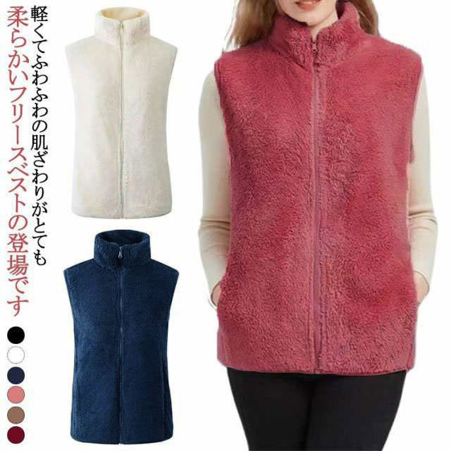 ボアベスト ボアジャケット レディース フリース ジャケット ノースリーブ フリースベスト アウター 暖かい あたたかい 立ち襟 インナーベスト