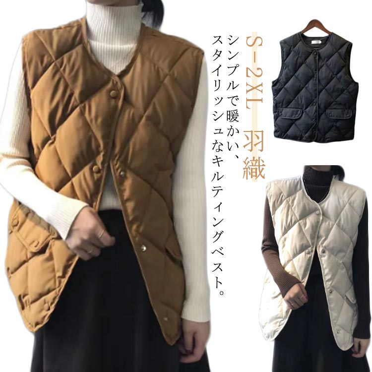 ベスト 中綿 レディース 秋 冬 ノースリーブ ベスト中綿 アウター コート おしゃれ 可愛い 羽織 トレンド きれいめ カジュアル 体型カバー レイヤード ゆったりシルエット 大きいサイズ