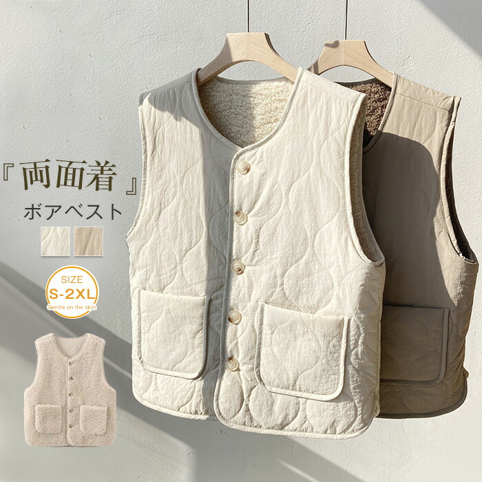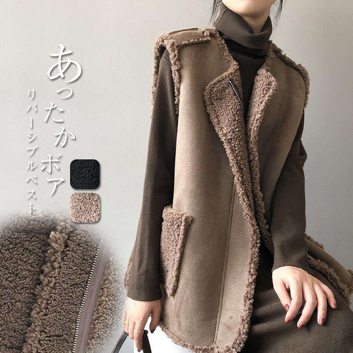 ベスト リバーシブル レディース ボアベスト 秋冬 ジレ リバーシブル ノースリーブ ボア アウター コート ベスト おしゃれ 冬 大人 可愛い 羽織 ベスト トレンド きれいめ カジュアル
