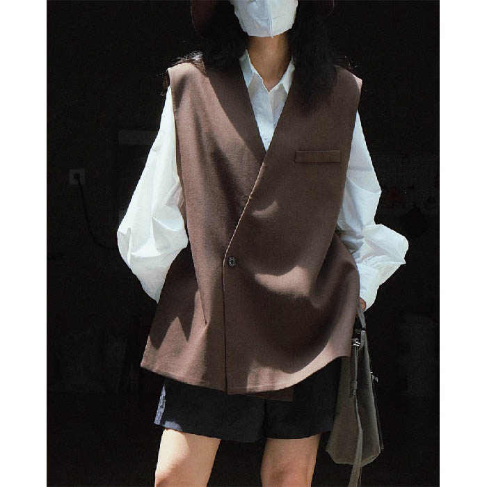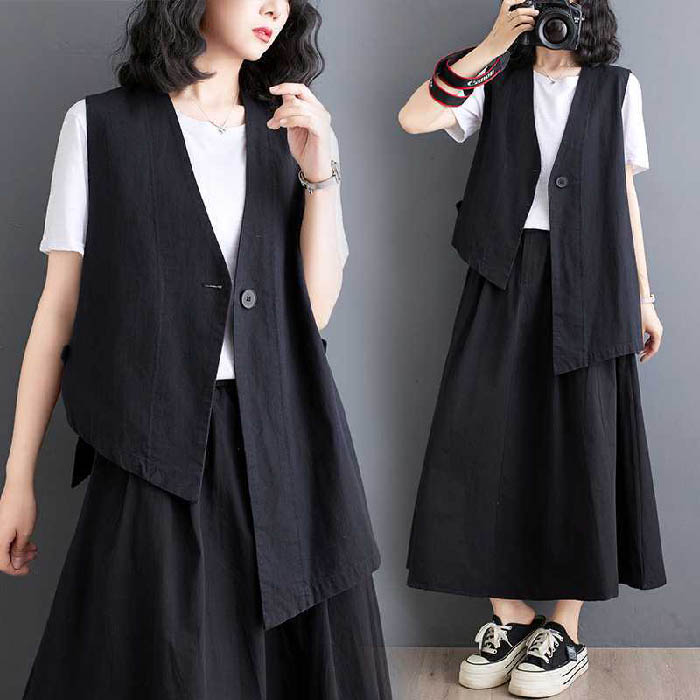 ベスト ジレ リネン レディース 春 秋 ノースリーブ レイヤード風 羽織り 無袖 綿麻 お洒落 レディース きれいめ 着痩せ 大きいサイズ 体型カバー ゆったり 着回し シンプル