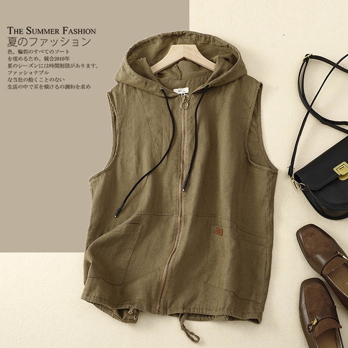 ベスト ジレ レディース 綿麻 春 秋 フード付き ノースリーブ レイヤード風 羽織り 無袖 夏 秋 春 お洒落 きれいめ 着痩せ 大きいサイズ 体型カバー ゆったり