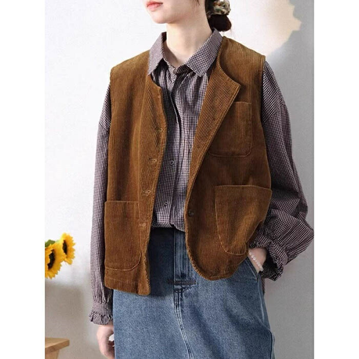 ベスト ジレ レディース 春 秋 ノースリーブ Aライン コーデュロイ 無地 ジレンチ トップス ポケット付き ジレ 春 秋 大きいサイズ ゆったり 着瘦せ
