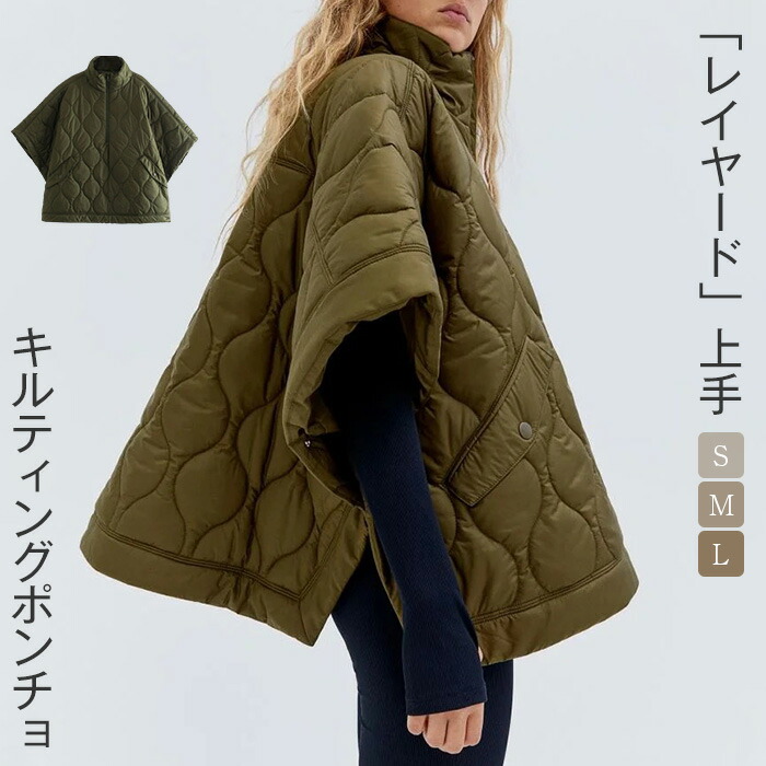 ポンチョ 中綿 ベスト レディース 秋 冬 中綿 ポンチョ レイヤード 春 秋 冬 中綿ベスト キルティング ポンチョ ハーフジップ トップス ドルマン スリーブ 重ね着 ノースリーブ