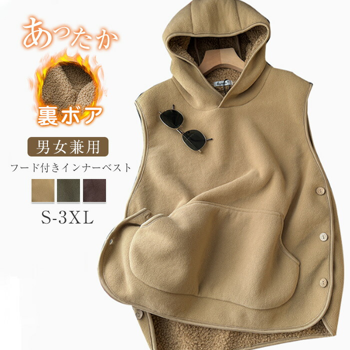 ベスト 裏ボア レディース ノースリーブ ボア ベスト ファー ベスト 裏起毛 メンズ 裏ボアベスト フード付き インナーベスト フェイクムートントップス サイドボタン ジレ ペアルック