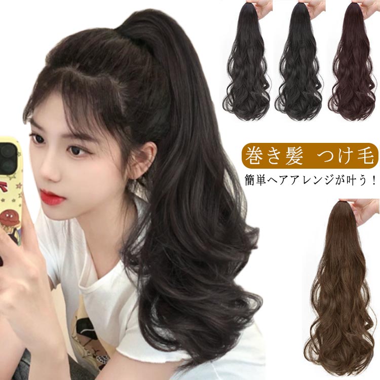ポニーテール ウィッグ クリップ 55cm カツラ つけ毛 エクステ 簡単 ヘアアレンジ ファッションウィッグ ポイントウィッグ カール 巻き髪 コスプレ