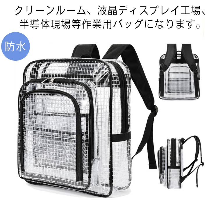 エンジニアバッグ 帯電防止バッグ 透明 無塵 クリーンバッグ クリーンルーム 工場 工事 液晶現場 軽量 ディスプレイ 半導体 PVC 防水 リュックサック 大容量