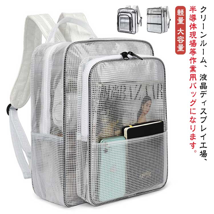 エンジニアバッグ 帯電防止バッグ 透明 無塵 クリーンバッグ クリーンルーム 工場 工事 液晶現場 軽量 ディスプレイ 半導体 防水 リュックサック 大容量