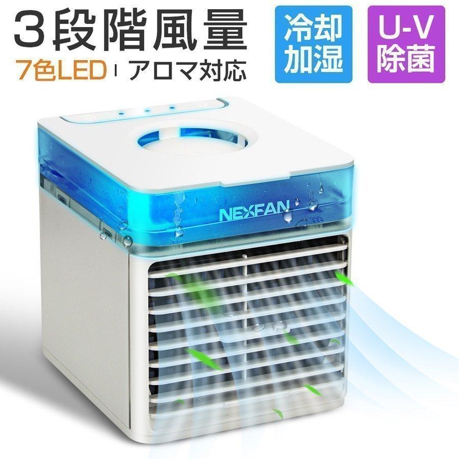 冷風機 卓上扇風機 冷風扇 冷却加湿 小型 3段階風量調節 USB給電式 抗菌 空気清浄機 7色LEDライト 静音 次亜塩素酸水対応 エアコン アロマ ポータブルエアコン