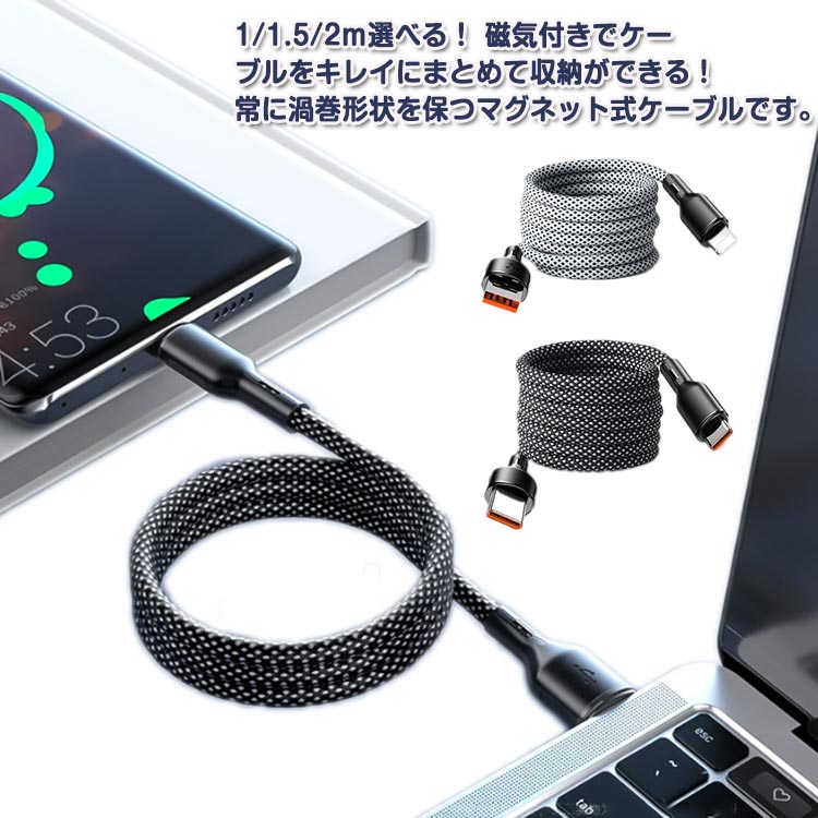 マグネットケーブル 断線しにくい 充電ケーブル マグネット 巻き取り iPhone android Type-c タイプc