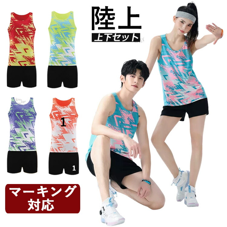 ランニング ユニフォーム 女性 陸上ウエア 男性 陸上競技 大人用 オリジナル プリント マーキングメンズ レディース 袖なし セットアップ 夏 ショートパンツ 上下セット トレーニング用服 練習着
