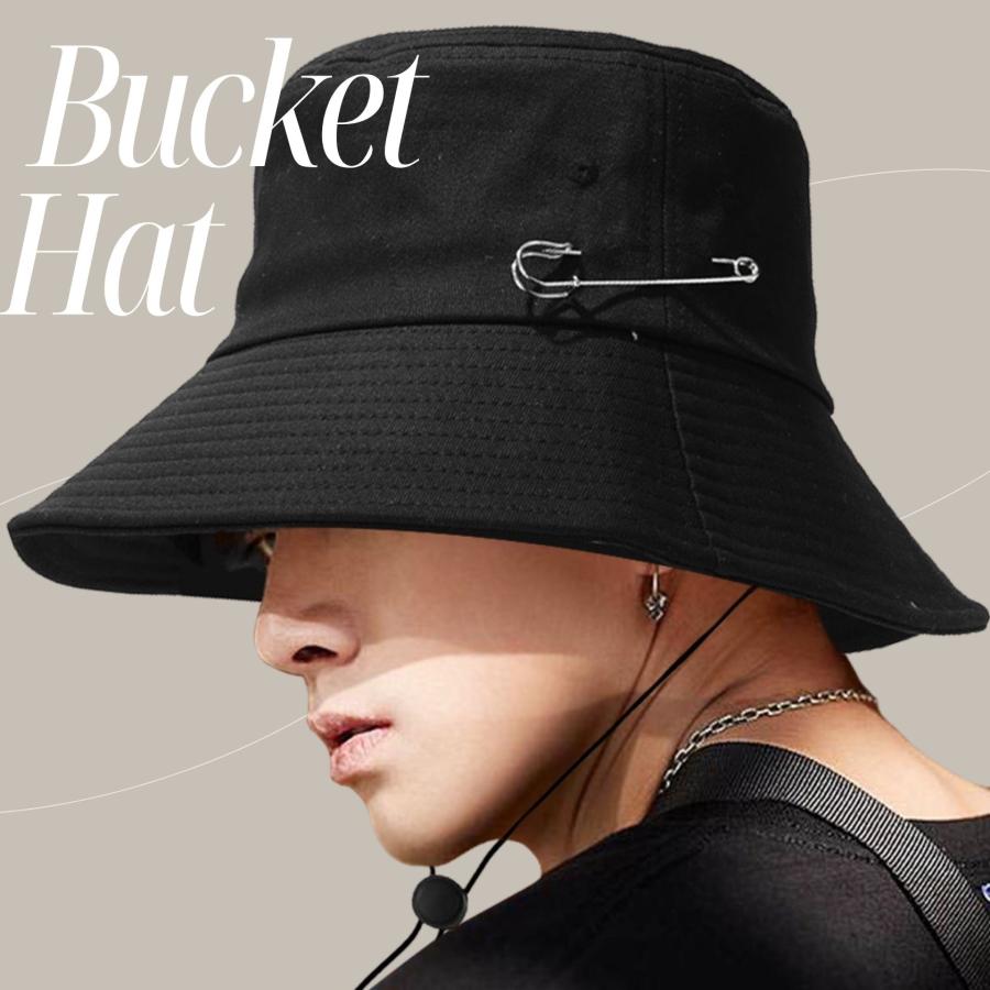 バケットハット 韓国 大きいサイズ バケハ サファリハット 帽子 黒 取り外し紐付き クリップスポーツ アウトドア アウトドア ウェア メンズウェア 帽子