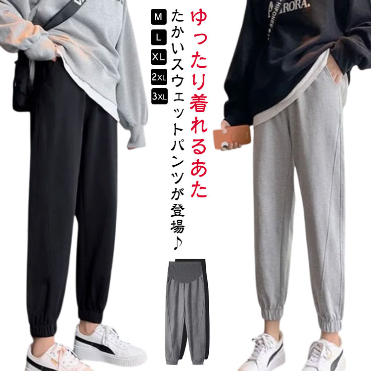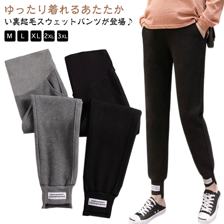 マタニティ パンツ 裏起毛 冬 秋冬 ゆったり おしゃれ 黒 ブラック 大きいサイズ 冬服 あったか 防寒 秋 冬