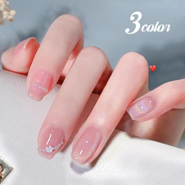 ネイルチップ ショート シール 花柄 パール キラキラ 厚手 かわいい 人気 24枚入り グミシール付き つけ爪 ショートオーバル 着脱簡単 ファッション