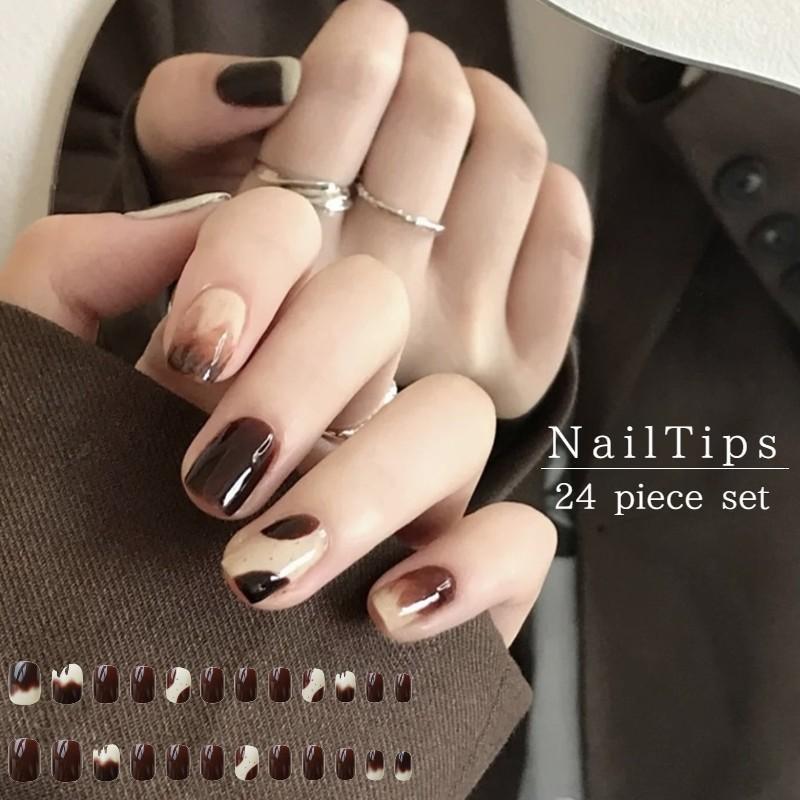 ネイルチップ 付け爪 24枚セット スカルプチャー 手の爪 ショート ブラウン セルフネイル ジェルネイル シンプル かわいい おしゃれ