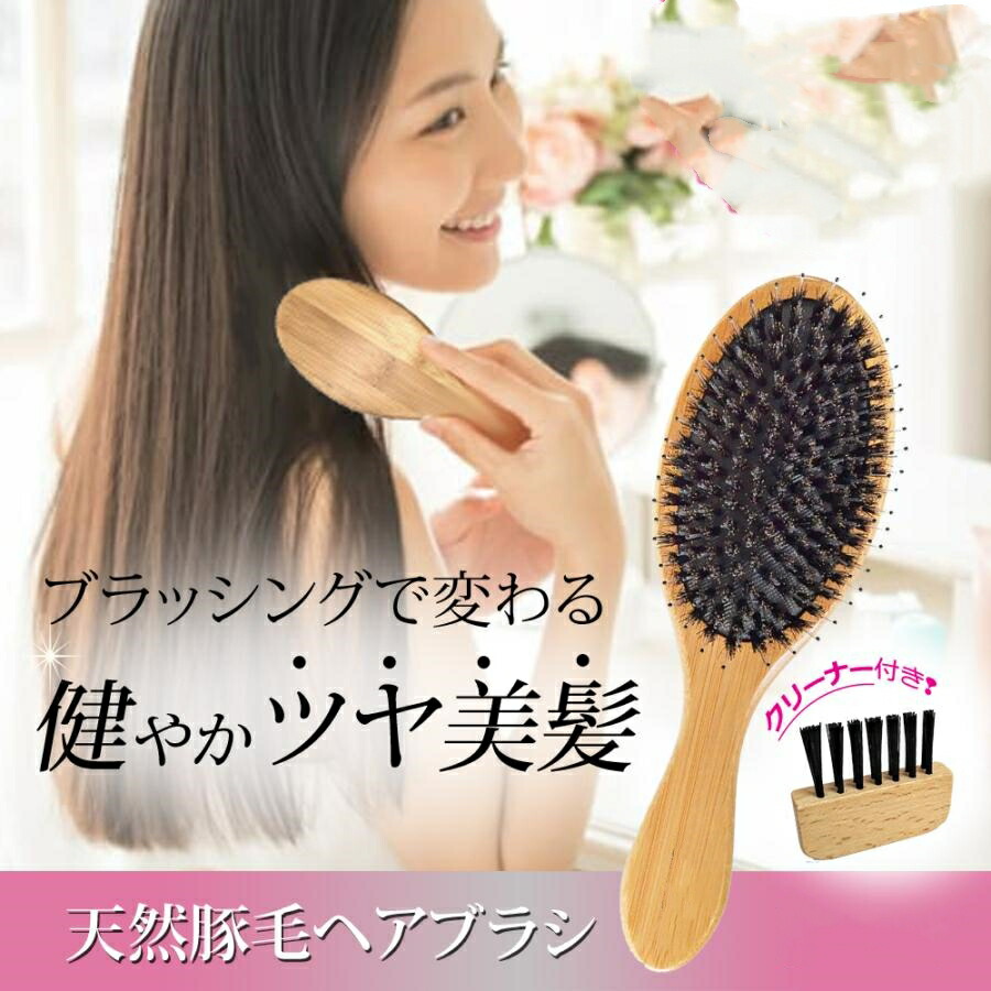 ヘアブラシ 豚毛 プレゼント 高級 サラサラ ブラシ バドル クッション くし 頭皮 マッサージ 軽量 櫛 獣毛 メンズ 女性 クリーナー付
