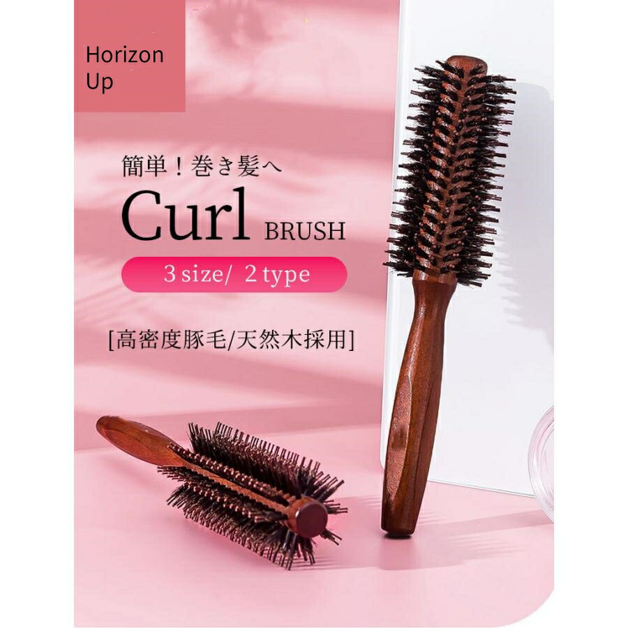 ヘアブラシ 豚毛 ロールブラシ 木製 カールブラシ ブローブラシ マッサージ ヘアーブラシ カール 静電気防止 くし 櫛 艶髪 巻き髪 天然木 ツヤ 艶