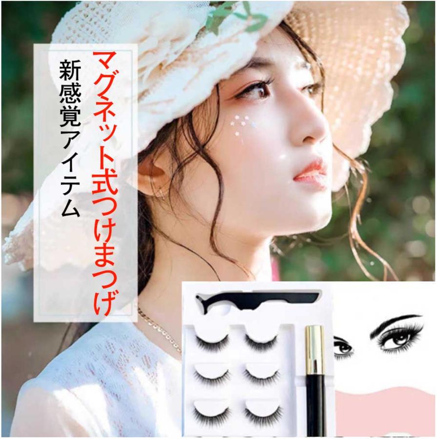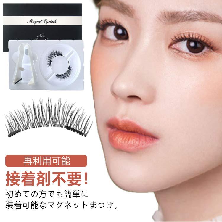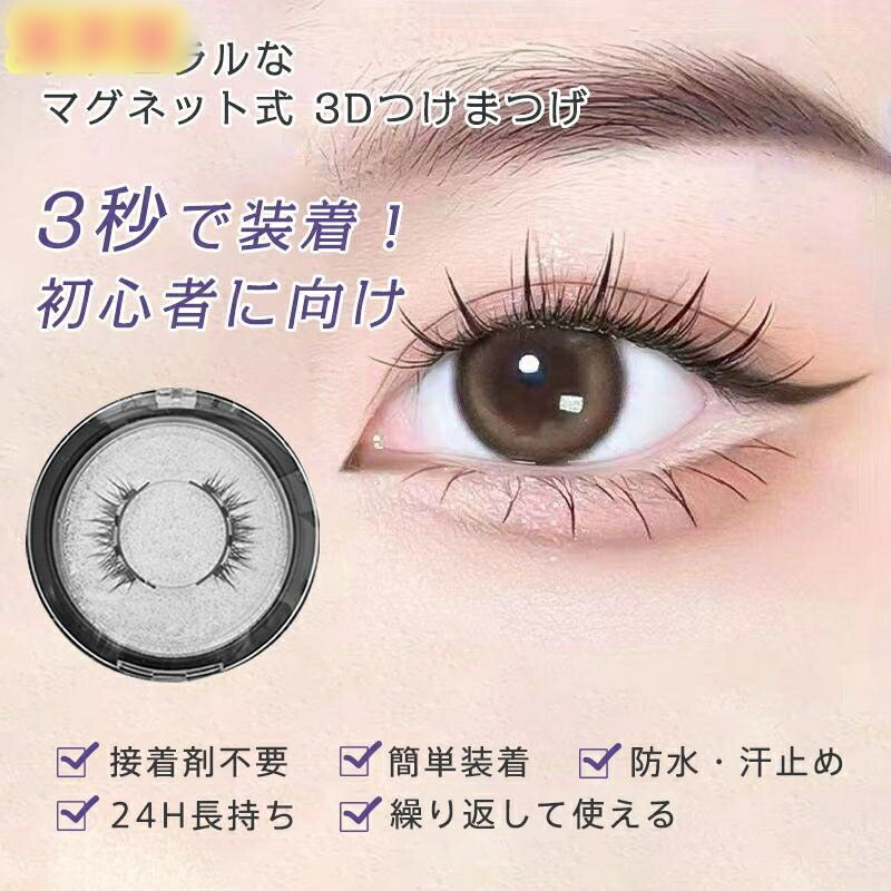磁気 つけまつげ マグネット式 3つけまつ毛 磁石つけまつげ 長持ち 接着剤なし クリップ付き 防水 汗止め ナチュラル 繰り返し使え 軽量 初心者