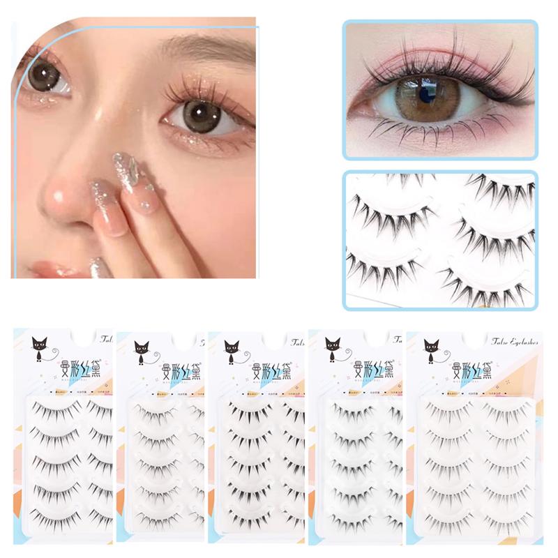 つけまつげ ブラック ボリューム 5ペア ナチュラル 手作り 繰り返し使える アイラッシュ マンガまつげ メイク ロング クロス 部分用