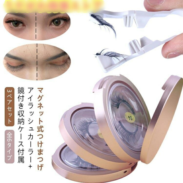 ミラー つけまつげ 3 磁石 マグネット式 ボリューム ナチュラル 接着剤不要 繰り返し使える アイラッシュ 磁石まつ毛 ケース 付き 収納 3ペ