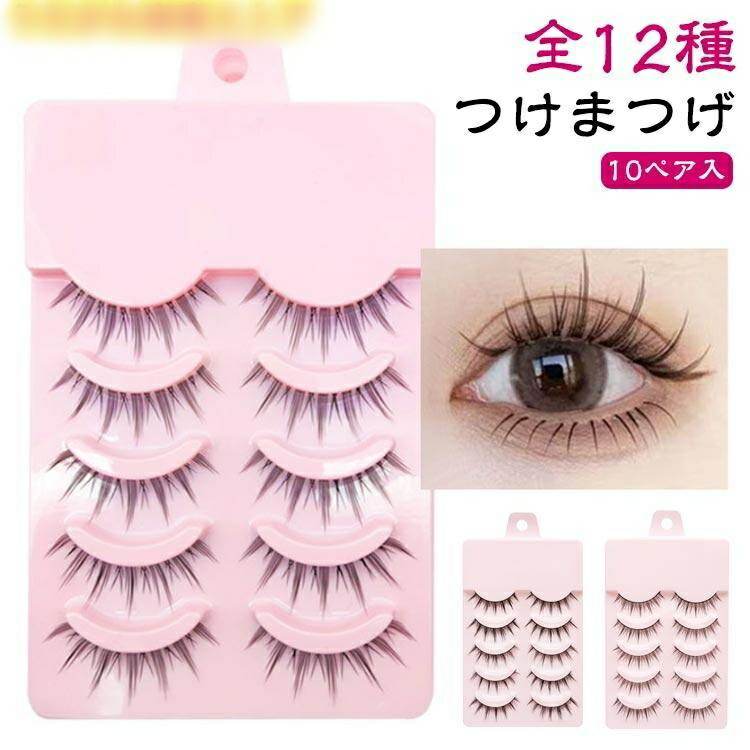10ペア入りつけまつげ 全12種 簡単 盛れる 束感 束 ナチュラル アイラッシュ 取れない つけま つけまつ毛 自然 セルフ ブラック 黒 睫毛