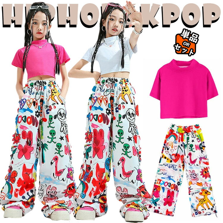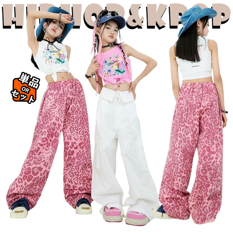 韓国 jazz ホワイト ピンク トップス 豹柄 ウェストパンツ キッズ ダンス衣装 セットアップ 上下セット おしゃれ 女の子 子供 かっこいい かわいい ノースリーブ タンクトップ ダンス